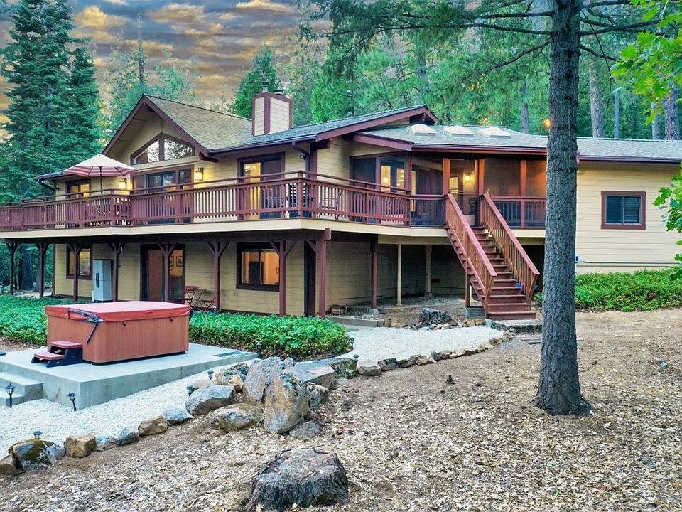 Exquisitely updated Nevada City home; only 8 minutes from downtown Nevada City and 15 minutes from the Yuba River! Spacious, chef's kitchen, large dining and living room and a lovely, screened porch off the large rear deck. Gas fireplace in the upstairs living room as well as a wood stove in the lower-level great room. Primary bedroom suite and guest bedroom on main level, 2 more bedrooms on lower level. Paved road to the property with a circular driveway. Roomy 2-car garage with lots of room for storage. Large laundry off garage. Hardwood floors in the living room, travertine in the kitchen, dining room and baths. Large hot tub included. New roof in 2019, new HVAC in 2010. Property has had trees nicely thinned and landscaping is very low maintenance. This home has been very well loved and maintained and is an easy place to call home!