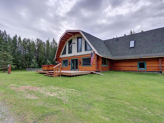 Custom Alaskan log home. 4 bedroom, 3.5 bath, sitting on 3.22 level acres w/ mountain views of Matanuska Peak. Fenced yard, large deck, and full detached heated garage /shop. Horse property.
