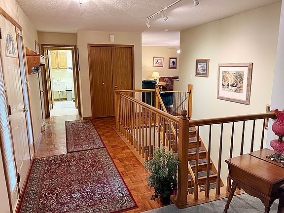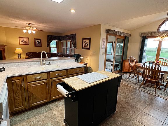 This 1995 built ranch home is situated on almost 1 acre on the edge of town and offers a country view. There is plenty of living space and deck for enjoying mother nature. The main floor offers a well lit kitchen and breakfast eat in area with lots of view and adjoined to the family room with gas fireplace. It also includes formal dining and living rooms. The master bedroom/bath offers a large walk in closet and separate bath. The newly added four season room provides views of the rural adjoining property. The newer composite decking faces the north and west-a great place to watch the sun set. There was a preexisting hot tub on the deck. The electrical hook up is still in place. The 3 car garage has a stairway entry into the workshop area in the basement. (Easy for carrying the salt to the softener.) There are 2 bedrooms-both with egress walk out windows, a full bath, family room and workshop in the nicely finished basement. More storage space for your toys or vehicles is right here with an additional 2 car garage. Whether you have small children/grandchildren, pets or both, the back yard is already fenced in for their playing pleasure. It will be easy to keep an eye on them with all of the north facing windows or while resting on the deck. This home has been well maintained and is ready for you to move in.