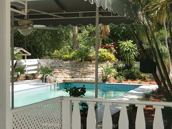 Absolutely immaculate original owner home on a beautifully treed spacious 1.58 acre lot. Home sits back from the road and is very private. Kitchen has been completely redone with granite counters, new lighting and under cabinet lites. Master Suite has a sun deck overlooking the front yard and beyond. Paved circular driveway, plenty of room for RV or boat parking.Large covered patio 26'x 12', and pool patio measuring 40'x 28'. The pool features a very nice custom rock waterfall and tropical landscaping maintained by a 5 zone irrigation system. The house has a 2 zone central AC system. The large detached gar has 1/2 bath. Above the gar is furnished guest apartment with full kitchen and appliances including washer and dryer. Apt has liv rm and one bedroom with full bath. Seperate cntl AC.