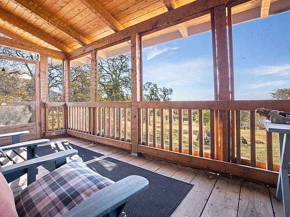 The little House on the Prairie! Stone Mill Log Home from Tennessee, built in 2009. Located on beautiful 36+ acres in remote, rural subdivision. Usable property adjacent to BLM land, with wide open spaces, fabulous views, seasonal ponds and streams and beautiful rock formations. Cabin is 3 Bedrooms, 2 baths with modern conveniences like Central Heating and air, water heater, disposal and stainless steel stove and refrigerator in the kitchen. Large open country kitchen with farmer's sink, cozy living room with efficient fireplace insert, family/game room with library, screened in front porch to sit and enjoy the peace and quiet. Detached 2 Car garage with workshop and large bonus room upstairs . Located in the heart of the Mother Lode between charming gold mining towns, large lakes and the Sierras