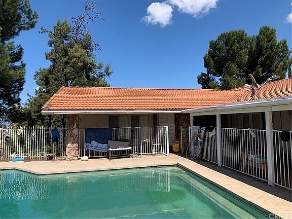Don't miss out on this secluded Ranch on a Large corner lot with 2 separate access gates.  This is one that does have a circular driveway with a fountain!   This custom home  boasts views from several parts of the home.  Great family home with a Large Master Bedroom, 3 secondary bedrooms & a downstairs separate living quarters with kitchen and Private entrance.   2 Acres consists of Full grown trees, Garden area, fruit trees,  pool and spa, Cabana, BBQ area, 6 Horse stalls and other fenced in areas for other animals.