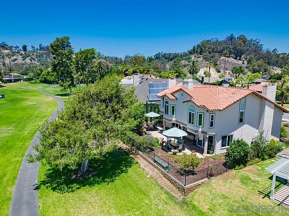 Price Improvement-here's your opportunity to live on a golf course in Rancho Santa Fe! Enjoy expansive views from this inviting home in the desirable Whispering Palms neighborhood. Spacious, well-designed floor plan, so many quality upgrades throughout! Entry boasts soaring ceiling, sweeping staircase, showplace chandelier. Large, open living room, high vaulted ceiling & FP adjoins light, bright dining area with sliders- great for indoor/outdoor entertaining. Family room with FP is designed for casual living & flows into upgraded eat-in cook's kitchen- granite counters, glass backsplash, walk-in pantry, designer cabinets, great open views. Travertine flooring, new carpeting, quality Milgard windows & sliders. Spacious DOWNSTAIRS BR or roomy office/den/studio with slider, newer bath. Custom blinds throughout. Relax in large, airy, sun-lit primary BR suite w/vaulted ceiling, picture windows, newer designer bath, jetted tub. 2 bright, well-sized BR’s: 1 w/ golf course views, 1 w/charming nook. Convenient upstairs laundry rm. One of neighborhoods largest lots on circular side street location with no thru traffic. Enjoy panoramic golf course views from scenic, low maintenance, fully fenced backyard, covered patio. Landscape improvements include water conscious, low-maintenance plantings, succulents, lemon & cypress trees. Enjoy living the Resort Lifestyle-near La Valle Coastal Club (formerly Morgan Run Club) with 27 hole golf course, tennis, pickleball, fitness, dining- new Club ownership states $25 million in upgrades are planned. No Mello-Roos, HOA fee only $100/yr!