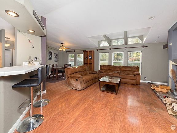 Three-bedroom, 2 full bath home on just shy of an acre w/SHOP & covered carport in the beautiful Jordan River Trails Community in Arlington. This will not last! The home features an open floor concept w/inviting covered front porch, vaulted ceilings, wood stove, large kitchen w/island & extra windows in living area to enjoy gorgeous views of backyard & greenbelt. Primary bedroom w/private bath has double sink & soaker tub plus attached office/nursery. A deep clean, new carpet, interior paint, a little maintenance & this amazing property will shine. Fully fenced front & back yard. Garden area and so much more! Enjoy the Community barn clubhouse, outdoor swimming pool, park w/trails, river access, sports courts & playground.