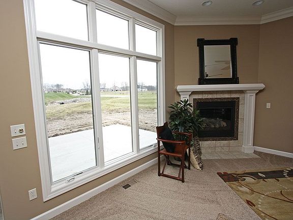 Why build a villa when you can buy this like new 4 year old villa with everything you need! This split bedroom villa in Twin Eagles subdivision with a 3 car garage. Open floor plan offers 9' and 10' ceilings, large laundry room with cabinetry and sink. Other features include corner fireplace, 4' wide hallways, oversized trim, custom Grabill cabinets, spacious master suite with a large walk-in closet and bathroom with a ceramic shower! Custom window treatments and all appliances included. Four season room located off the master and the nook. Large covered porch and open patio. This home is made for entertaining and move in ready! Professional landscaping all around the house, third bay garage door opener, plus irrigation system. No more shoveling or mowing! This home is move in ready and will not last long!