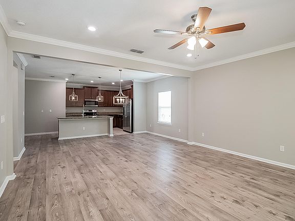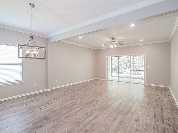 This beautiful 4/2 features include gorgeous updated kitchen dark cabinets, stainless steal appliances, granite counters, & a walk-in pantry. Dining & living area offers a natural separation, room for your farmhouse table and all your friends and family. Crown molding, wood-look laminate flooring and upgraded lighting. Sliding glass doors to the screened back patio allow indoor to outdoor entertaining overlooking the lush green backyard. Master retreat has soft lighting, walk-in closet, separate shower, double sided sink along with garden tub. Plus more! **Pet Restrictions: Restricted breeds - Akita, American Bulldog, American Pit Bull Terrier, Bull Mastiff, Chow, Doberman, German Shepherd, Great Dane, Husky, Pit Bull, Rottweiler, Wolf, or any mix of the listed breeds breeds. Assistive pe