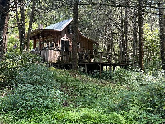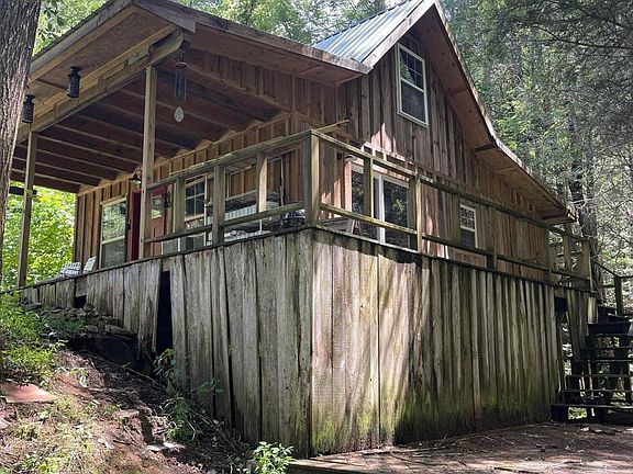 Another OPPORTUNITY just opened up for you to own this charming and cozy log home with plenty of attractive features. This private rustic log home offers a 1 bedroom, 1 bathroom layout and is situated in a picturesque setting with creek frontage almost wrapping the home. The home is 90 % completed of a (+/-) renovation down to the studs just waiting for your finishing touches. There is a Mini Split unit that will heat and cool the cabin space with ease that needs to be connected. One of the standout features is the custom oversized bathroom that boasts of a walk-in shower and a jetted tub, with a rustic sink providing a luxurious and relaxing bathing experience. The open floor plan on the main floor creates a spacious and airy living environment, allowing for seamless interaction between the living, dining, and kitchen areas. There is a sliding door off the dining room adding plenty of nature views and sunlight; Additionally, having a laundry room on the main floor is convenient and practical. The large bedroom on the upper floor not only provides privacy but also offers a beautiful view of the surrounding land and creek. The character of the log home is likely enhanced by its rustic design and wooded surroundings and sounds of running water of the creek. The slightly sloping landscape adds visual interest and potentially offers unique landscaping opportunities. The presence of a front porch is a classic touch that invites outdoor relaxation and provides a space to enjoy the serene setting. Overall, this log home seems to embody the perfect balance between rustic charm and natural beauty. There is potential to purchase an additional 6 ½ acres with this land. An appraisal has been performed of this property recently. There are areas of this home that need to be completed and worked on the inside and out. Very comfortable living space while working on the list. This home has gone though inspection.