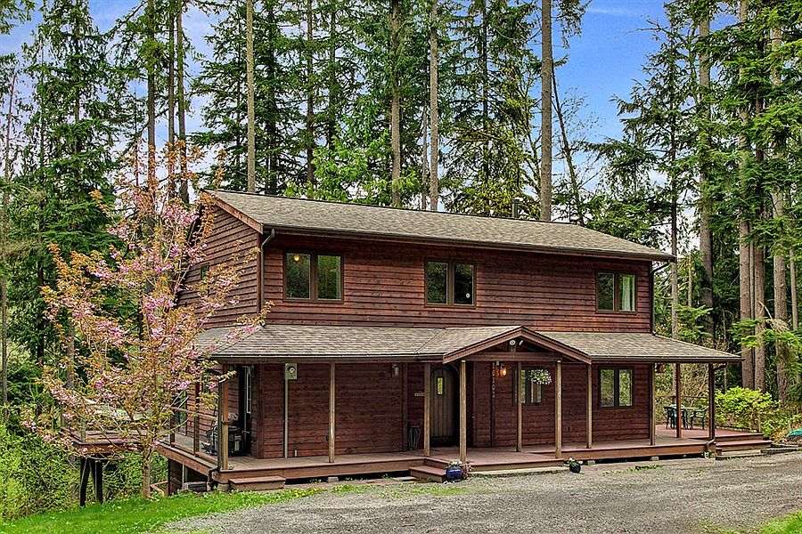 Privacy & Tranquility - Custom built home on 5.77 acres, w/ Cherry Creek running through your meadow! Main floor master w/ access to deck, two add'l beds, loft & bath upstairs. Main floor kitchen w/ granite, stainless appliances, open to eating area & vaulted ceilings in living room. Lots of natural light, new paint. Lower floor has family room w/ slider to deck, another bedroom/office, plus large finished area for storage, etc. Large deck to entertain, play structure, circular drive. Call now!