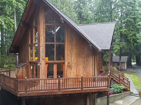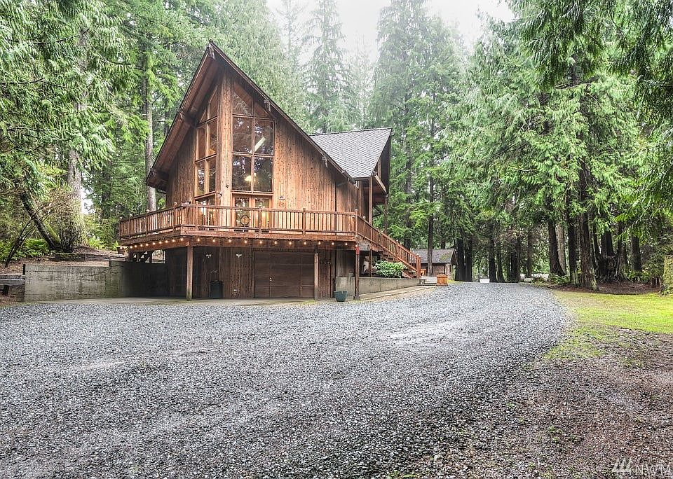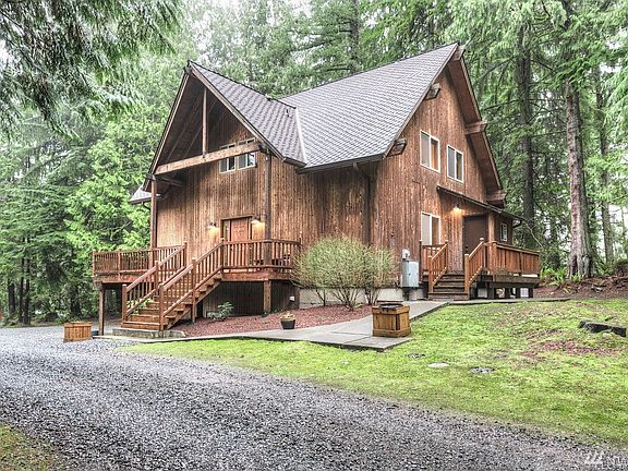 Welcome home to a Private Retreat! Stunning Cedar siding home w/NEW 50yr Presidential Roof & Gutters! Wrapped in an Entertaining Deck & Sidewalks! Vaulted ceilings, French Doors, Floor to Ceiling Windows & Wood Beams make this home a show stopper! Main floor Master - 2 Bedrooms up w/a quaint Loft & full bath. Barn w/Stables/Loft/Lean-to, Detached 2 Stall Stables, Tool/Work Shed, Raised Beds, Pasture Area, Fire Pit (x2), 3 Car Garage, Gated Entry, Heat Pump, Fully Wired Propane Generator. Hurry!