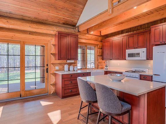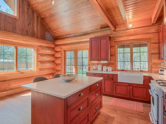 Exquisite custom-built Richardson Log home. Embraced by stunning 18 '' scribe log construction with impeccable craftsmanship and breathtaking design. Open floorplan with oversized windows bringing in the natural light, vaulted wood ceilings with floor to ceiling rock surround wood burning insert. The kitchen boasts solid knotty alder cabinets and quartz countertops. Downstairs bathroom has a tile walkin shower, Quartz counters, knotty alder custom cabinets and solid doors throughout. Upstairs is 16 x 22 spacious loft with lots of windows bringing in the outdoor light, alongside a walk-in closet and full bath with shower/tub. Outside, a 30X50 finished insulated shop provides ample space for RV 12X14 door or Sporting equipment 10X8 door. Situated on 1.71 acres, amenities include, sprinkler system, fire pit, storage sheds, and 1 RV hookups. Enjoy peace of mind with a backup generator and a fully fenced yard for enhanced privacy. Located 1 mile from LaPine State Park, Easy commute to Bend