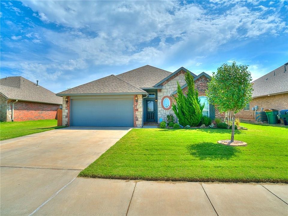 This beautiful 3 bedroom, 2 bath home is located in Deer Creek schools and has it all! The open floor plan exhibits a fantastic kitchen with granite counter tops and stainless steel appliances. The interior displays brand new carpet, fresh paint throughout, and a dazzling remodeled master bathroom shower. The large master bedroom opens to a an excellent master bath with a dual vanity and has a spacious closet. The stunning pergola in the backyard is perfect for entertaining family and friends. The magnificent backyard also has a firepit and an oversized back patio. In the garage is a storm shelter that was added as well. The neighborhood comes with a club house, poo,l and recreation area!