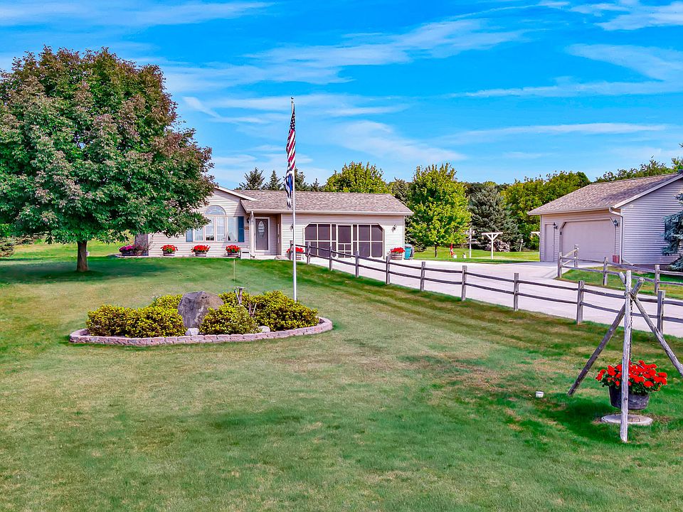 A beautiful 3 bedroom ranch home nestled on 1.5 acres on a quiet country cul-de-dac with southern exposure providing for a bright and spacious living room, dine-in kitchen with patio doors leading to the deck overlooking a nicely landscaped yard with mature trees. Finished lower level with a large entertaining space, wet bar, full bath, additional room for your office or exercise equipment, along with plenty of room for storage. 2 car attached garage, heated and tastefully screened for summer fun, plus an additional 2 car detached garage with a workshop and room for your toys. Many updates including roof, gutters, furnace and central air. Don't miss this one! The home is in new home condition and will save you from the high cost of today's building costs.