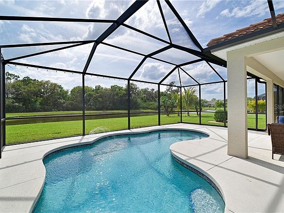 Fall in Love with the Elegance and Charm of this 3 Bedroom, 2 Bath pool home with a den and serene views located in beautiful Twin Rivers. Luxurious upgrades include Plantation Shutters throughout, vaulted ceilings, crown molding, high-end light fixtures & ceiling fans, and so much more. The gourmet kitchen features custom cabinets, tiled backsplash, breakfast bar, beautiful granite countertops, pantry, and stainless steel appliances. The elegant master suite with 2 walk-in closets, and a luxurious master bath with a separate shower, granite counters, dual sinks, and garden tub. Additional rooms include a spacious great room with built-in electric fireplace, separate dining room, office/den, and laundry room. Exterior features include an extended lanai with a heated salt-water pool with fountain, multiple fruit trees, beautiful mature landscaping with curbing, in-wall pest control, leaded glass doors, hurricane shutters, tile roof, and circular drive. Amenities include a boat ramp on the Manatee River for canoeing, kayaking, fishing, and boating, playgrounds, soccer field, basketball court, beach volleyball, picnic pavilion, and miles of nature trails.