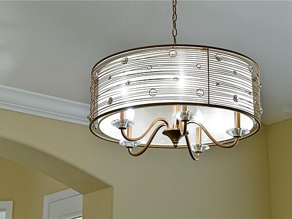 - Interior Features: Ceiling Fans(s), High Ceiling(s), Master Bedroom Downstairs, Split Bedroom, Stone Counters, Walk-In Closet(s), Crown Molding, Solid Wood Cabinets, Thermostat, Kitchen/Family Room Combo, Window Treatments