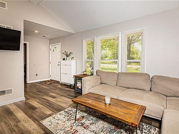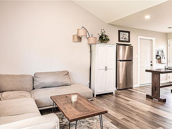 COMPLETELY RENOVATED 2 bedroom, 1 bath home. Full renovation in 2022- Vinyl Plank flooring throughout the home. Vaulted ceiling in the open floor plan living room with large sun loving windows. Living room flows into the modernized and updated kitchen. Quartz counter tops in the kitchen and bathroom. Stylish white cabinets with free floating shelve, gooseneck faucet and updated light fixtures. Hard surface luxury plank flooring throughout the home. Spacious main bedroom with walk-in closet. The second bedroom is located off the living room. Oversized bathroom. Double vanity sink with quartz counter top. Huge shower with stylish tile and built-in shelf with glass door entry. Attached 1 car garage with built-in shelves and extra room for storage, garage door opener and stylish garage door. Deck was built in 2022 during renovations and has ample room for entertaining. Large flat partially fenced backyard with mature trees gives extra shade during the summer. Vinyl siding for easy care on the exterior of the home. The roof is 2 years old. HVAC- Furnace and A/C unit are both less than 2 years old. Seller is leaving all appliances in the kitchen and the washer and dryer.