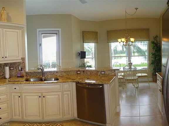 3 bed/2 bath plus den "Savanah" estate home with 2 car garage has spectacular golf and lake views! Home features 20" tile, crown molding, surround sound throughout, fireplace with chimney, built ins in den and living room, storm panels and newer ceiling fans! Master bath has seamless shower, plantation shutters, tiled backsplash soaking tub, comfort height toilet, marble counters! Guest bath has plantation shutters, decorative light fixture, comfort height toilet! Kitchen has newer cabinets, S'S' appliances, granite counters and backsplash, along with an eat in kitchen! Also a 2014 hot water heater, 2009 A/C, 2017 resurfaced pool and spa, 2017 pool heater, 2018 pool pump, 2018 inspected roof and repaired, Plus golf cart included!