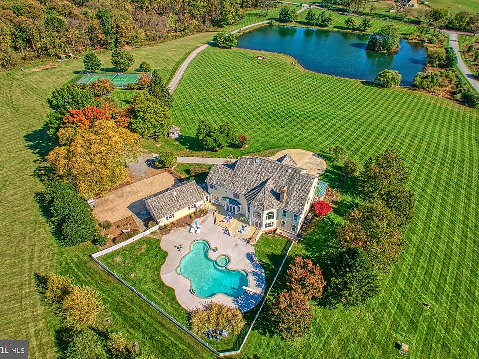 Imagine the feeling as you leave the world behind and drive onto your private country retreat. A 4 acre stocked pond, welcoming wrap around front porch, and scenic views provide the setting for this lovely estate home on 37-plus acres comprised of two lots. The home is anchored by all of the amenities you would expect in a home of this caliber. A two-story family room with a wood-burning fireplace, a large well-appointed kitchen, butler's pantry, library, office, formal living and dining areas as well as two half baths are found on the main floor. The upper level consists of a primary suite with a cozy sitting room, large private bath and two walk in closets. Three generously sized additional bedrooms, and two full baths round out the second floor. The lower level 's entertaining area includes a wood-burning fireplace, private room used as a 5th bedroom, full bath and large storage options. Outside you will find room to entertain with a pool/spa, outdoor fireplace and large patio. Enjoy watching tennis matches on the lighted court from the observation deck that also enjoys scenic pond views. Kids both young and old will enjoy taking a canoe or boat to your private island on the pond. With close proximity to commuter routes, minutes to downtown Leesburg and all Loudoun County has to offer, this home is close to everything and yet a world away.