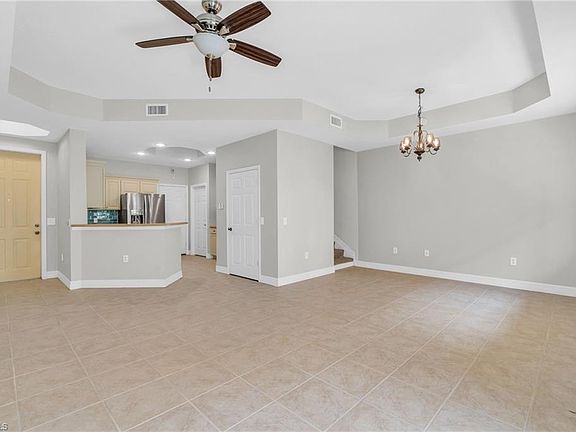 Welcome to this inviting 3-bedroom, 2.5-bathroom townhome located in the desirable gated community of Sail Harbour. This home features an attached garage, tray ceilings, hurricane impact windows, low HOA fees, easy access to the community pool and more. Enjoy the comfort of a newer AC, water heater, and appliances, along with a freshly painted interior. It’s truly move-in ready! The kitchen is designed for culinary enthusiasts, showcasing a sleek new backsplash and stainless steel appliances. A convenient half bath is situated off the kitchen and living area on the ground floor, ideal for guests. Step outside to your private, spacious patio for relaxation. Upstairs you’ll find a spacious loft connecting three ample bedrooms, including a primary suite with two walk-in closets. The renovated primary bathroom offers a walk-in shower, dual vanity, and a luxurious soaking tub, providing a spa-like retreat. Perfectly positioned near shopping, dining, HealthPark, and the beautiful beaches of Southwest Florida. Seize the opportunity to make this exceptional residence your new home!