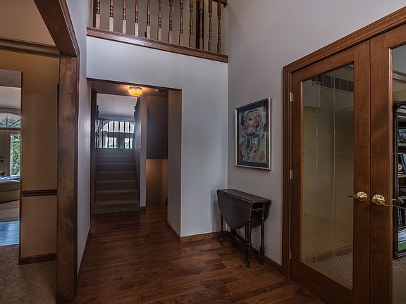 Exceptional 1.5 Story with spectacular view on a Cul de Sac. Open floor plan with 2-story Entry Foyer, Formal Living Room and Dining Room, Vaulted Great Room has a floor-to-ceiling brick fireplace with Gas Logs. Kitchen has been totally updated w/granite counters, custom cabinetry, wood floor, breakfast room with coffered ceiling walks out to spacious deck that overlooks the pool and gorgeous view of the valley. Main floor Master Bedroom Suite With Master Bath with skylight. Upper Level has 3 additional bedrooms plus 2 hall full baths. Professionally finished Walk Out Lower Level Has Family Room, Full Kitchen, Sleeping area/Office and full bath. Quality features throughout include French doors, bay windows and millwork. Beautifully landscaped grounds include approximately 3/4 Acre, in-ground pool, patio, deck, sprinklers and 3-Car Garage.