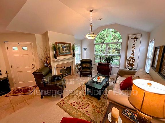 Sought after home in Orchards at Jones Bridge. Maintenance free living! Open concept floorplan with neutral paint colors throughout. Master bedroom on main level. Additional bonus room/office on main level with separate half bath. Upstairs features large bedroom/office/guest space with full, private bath. Large family room looks out on to private patio with serene, wooded views. Large 2 car garage with storage. Very peaceful wooded lot with serene views. Pool and Fitness Community. A small pet will be considered. Rental amount includes water and garbage collection.