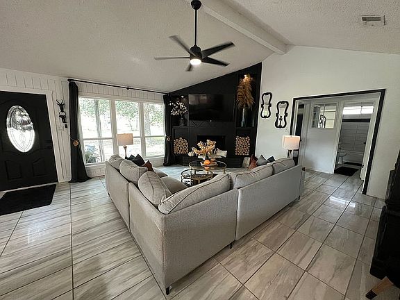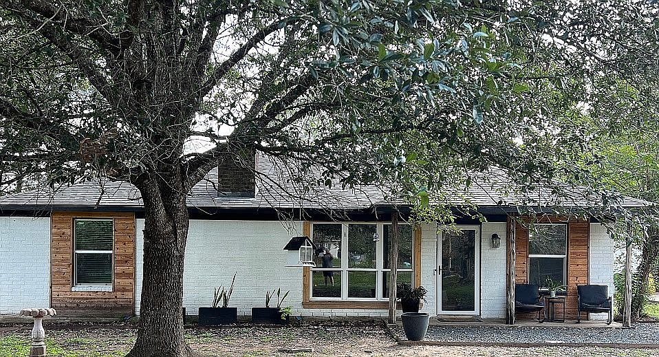 Beautifully updated home on a large 1.56-acre corner lot with a small pond. Updates include new flooring throughout, new countertops in the kitchen and both bathrooms, updated custom backsplash and tub surrounds, oversized walnut waterfall kitchen peninsula, vaulted ceiling in living room, custom fireplace, tankless LP water heater, and water softener. There is a double gate with remote opener, a two-car detached garage with a small office built inside. The home is farm-ready with a custom chicken coop built so you can have your own fresh eggs every morning.
