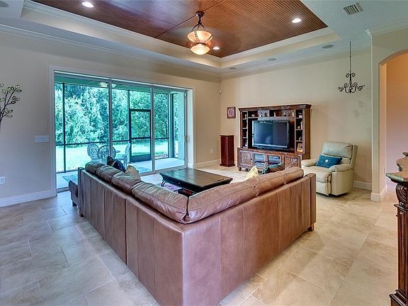 PRICE REDUCTION - MULTIGENERATIONAL home custom designed for your family. Luxury in-law suite has private entrance, greatroom with built-in cabinet, food prep area, master bedroom, glamour bath, walk-in closet, additional office/bedroom. Great curb appeal on a culdesac, conservation half acre lot. Covered paver entry. Greatroom has tray ceiling with beadboard, triple sliding doors to screened lanai all open to kitchen-stainless, granite, sunny eating space with two picture windows. Arched opening to separate dining room. Master Bedroom is large with sliding doors to lanai, glamour bath has corner garden tub, tiled shower, walk-in California closet. Two additional brs and bath. 4th full bath outside of laundry room area. Home features ceramic tile floors with mosaic accents, lots of crown molding and chairrail, high ceilings, ceiling fans and surround sound throughout. Two A/C systems (main house new), radiant barrier in attic. Home is pre-wired for pool and outdoor kitchen. Twin Rivers has a boat/kayak launch, community park with volleyball, basketball, picnic area, playground, soccer field. Lifestyle at its finest in a one-of-a-kind home for your family.