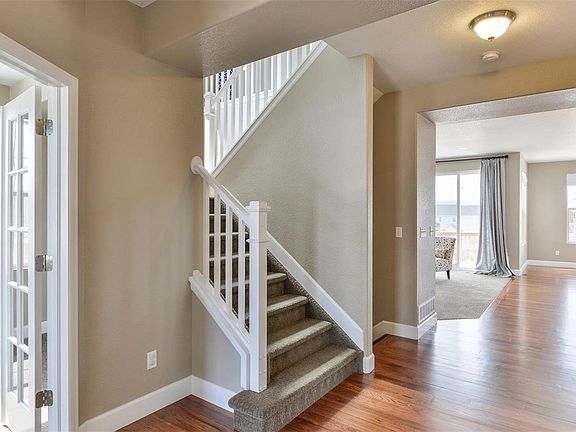 Gorgeous, almost new, Classic Somerset home! Enter to beautiful wood floors and a bright and open floor plan. The main level office is entered through french doors and has magnificent views out the front of the home. The main living area includes an open concept with the great room, dining area and large kitchen. Every cook will love this kitchen with its gas cooktop, upgraded stainless steel appliances, quartz countertops, farmhouse sink, white cabinets, and huge island with counter seating. The Great room has a stone gas fireplace and built in shelving, as well as huge windows and glass doors to walk out to the back and enjoy the sweeping mountain views. The spacious dining area includes wood floors and adjoins the gourmet kitchen. The main level also features a mudroom area entered through the garage and a large walk in pantry. On the upper level is a large master suite with a coffered ceiling and a private balcony to sit while enjoying your morning coffee or evening sunsets. The spa like master bath has a large walk-in shower, soaking tub, double sink vanity and connected walk-in closet. Completing the upper level is a large loft area, three additional good sized bedrooms, a full bath and a conveniently located laundry room that accesses the master closet and additional access to the three bedrooms. The unfinished basement leaves plenty of room to expand or storage space. The fenced backyard has a beautiful composite deck and a patio area that makes great space for BBQ's and play time. Note that this home has a three car tandem garage. Great neighborhood with parks and easy access to shopping, restaurants and schools.