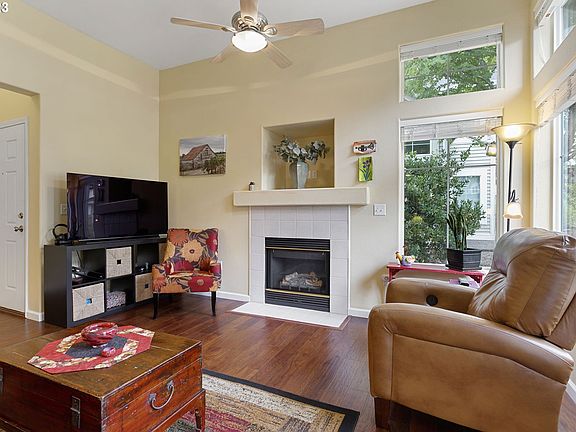 Creekside Condo with ice cold AC, brand new furnace and 2 car attached garage. This unit offers the perfect combination of comfort, style, and convenience. Covered entry walkway leads to living room w/ soaring ceilings, cozy gas fireplace, wall of windows letting in lots of light and a porch with view of open green space. Engineered wood floors throughout creates a seamless flow between open concept living, dining, and kitchen areas. A half bathroom on the main level includes laundry, built in storage shelves, washer and dryer. Spacious primary offers a large on-suite with dual sinks, soaking tub, shower & walk-in closet. Two additional bedrooms and a hall bath complete the upstairs. A short distance to the THPRD Nature Park, Downtown Beaverton, Nike, and other major employers. This one has been well cared for. Don't miss out on the opportunity to call this your next home!