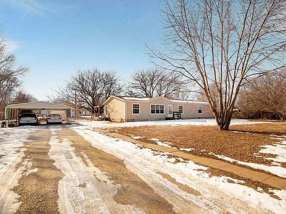 Are you looking for a little privacy in a newer home?! Then welcome home to this charming manufactured home on 1.05 acres in peaceful Clearwater, KS! Built in 2010, this 5-bedroom, 3-bathroom home offers spacious living both inside and out. The open-concept kitchen features a large island, sleek black appliances, and walnut cabinets—perfect for cooking, entertaining, or gathering with loved ones. The master suite is a true retreat, boasting double sinks, a garden tub, walk-in closet, and plenty of space to unwind. Enjoy the outdoors with over an acre of land, complete with a carport for covered parking and a huge garage/workshop w/ loft space for additional storage. Whether you're looking for a quiet escape or room to grow, this property offers the best of both worlds. Don't miss your chance to call this place home—schedule your showing today!