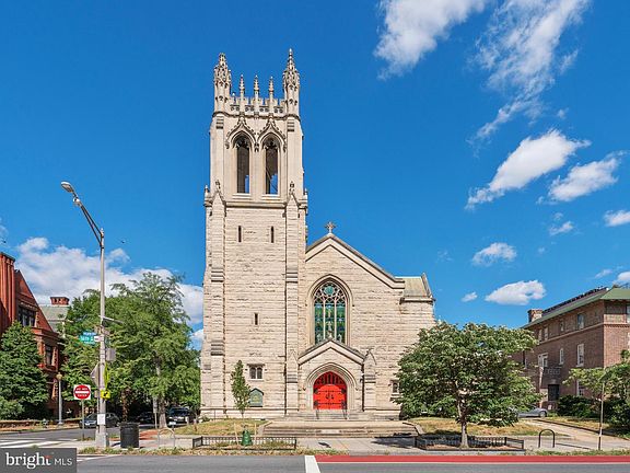 This remarkable church property is a designated historic landmark in the heart of the Sixteenth Street Historic District. With its incredible architecture and dynamic Dupont-Logan location, it is an exciting opportunity for a new congregation, residential development or limited business uses per the RA-4 zoning (such as a school or art gallery). The Sanctuary building with a soaring 44+ foot vaulted ceiling was designed in the Gothic Revival style by renowned architect Langford Warren; the 1894-1896 construction was supervised by Paul J. Pelz, best known as the main architect of the Library of Congress. The stunning stained-glass windows include one from the Tiffany & Co studios; no changes can be made to the windows nor the building exteriors because of the historic status and zoning. The three-level Parish House (South Wing) was added by the same architectural team in 1912. The total building area is 16,150 estimated square feet with a lot size of 9,860 square feet. This active Swedenborgian church has an estimated seating capacity in the Sanctuary of 340; the South Wing has large and smaller meeting rooms for gatherings and services. There were major renovation projects during 2018-2022 including extensive tower repair work, two new 200 amp electric panels, new boilers for radiator heat and the addition of air conditioning (CAC in the Sanctuary and wall AC split units in the South Wing). Off the 16th Street front driveway find parking for up to five cars; there's a wide alley from Corcoran Street at the rear door.