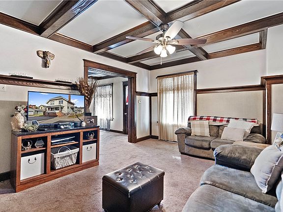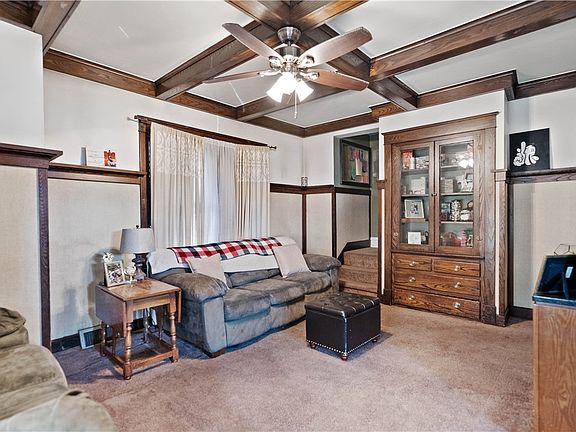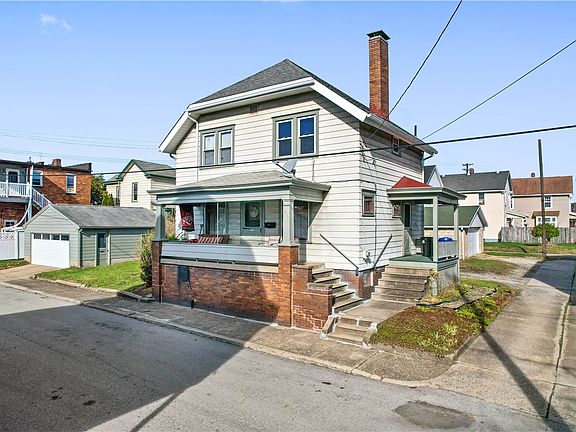 Here's your opportunity to make a house your home in the desirable Oak Hill Neighborhood of New Brighton! Nice front porch opens into the Living Room with Stoned Over Fireplace and GORGEOUS Original Built-ins and beamed ceiling. Dining Room offers more original trim work, beamed ceiling another original built-in and lovely picture rail around the perimeter. Galley style kitchen offers functional workspace, wall oven and cooktop. Existing dining bar and pantry . Door to side porch leads offers secondary entry/exit. Upstairs you will find a full bath with tub/shower combo and linen closet. There are three bedrooms located on the second floor, all with closets. One closet offers access to the attic. One bedroom is only accessible via passing through another bedroom. Large Basement offers space for storage, workshop area and laundry. Enjoy the Two Stall Garage which offers Off Street Parking! Nice Yard Area for your enjoyment. Home is full of original character!