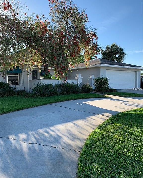 This is really an adorable home with a very spacious den with French doors and a built in desk and shelves. Its on a corner lot that is beautifully landscaped with a lagoon behind. Eat in kitchen with loads of cabinets and off the sliding glass doers in the kitchen is a large fenced patio area. Off the living room is a totally glass enclosed Florida room for year around living that overlooks a private backyard setting and lagoon. Ample parking with 2 car garage and circular driveway. Long term tenants hated to leave and said "It was the best place they ever lived". All yard care is done at the expense of the landlord.