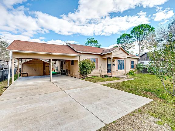 Check out this charming 2-3 bedroom 1.5 bath home in the heart of Rosenberg! This super cute home needs your finishing touches and updates but has served as a wonderful family home for many years! You'll love the large fenced yard, along with the large carport with concrete driveway which provides covered entry into the home for those rainy days. Relax on the covered back patio. Small workshop is the perfect place to store your tools and toys. Large living room and dining room, or use your design skills to convert the oversized dining room into an open combined kitchen / dining space. There are lots of possibilities here! If the laundry room is relocated, this room could easily serve as a small third bedroom. Sellers are selling AS-IS. Call today to schedule your appointment!