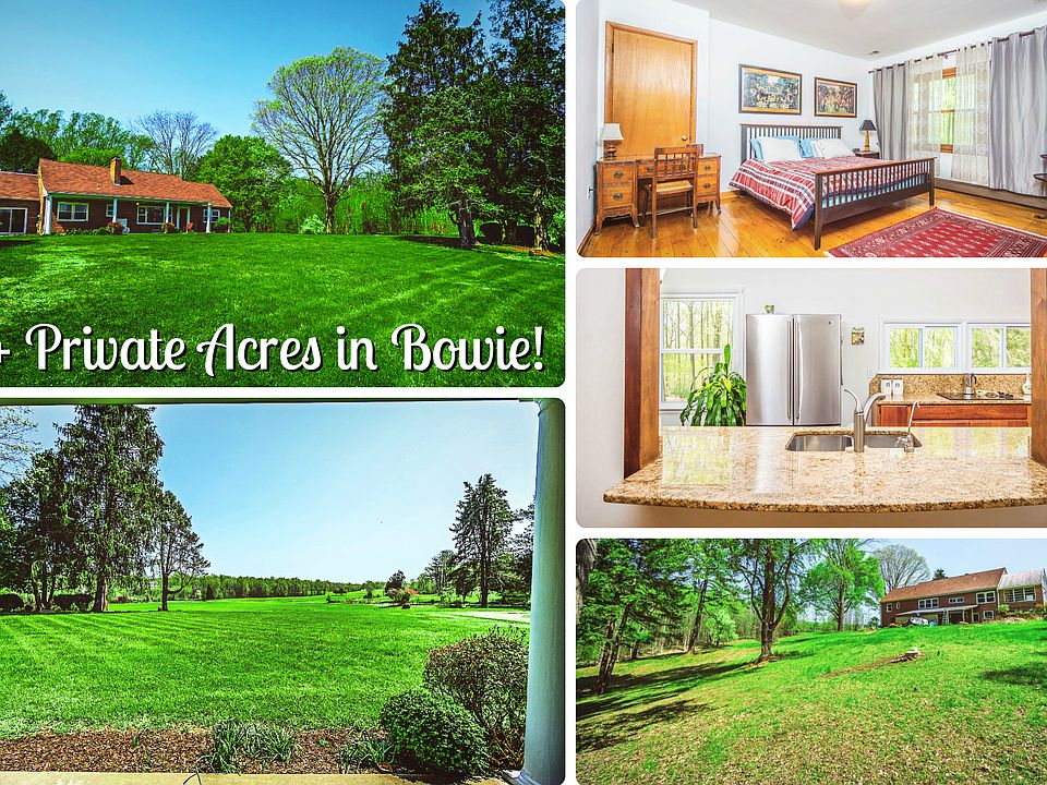 Huge 2700+ square feet above grade, located on five acres of pristine and PRIVATE woods! Sub-divide the lot! Neighboring acreage is PROTECTED and cannot be built on! In the heart of Bowie, close to EVERYTHING! Just renovated in 2009, including kitchen, bath, roof, windows - you name it! Fireplace on each level, sunroom for eating on cool summer nights!