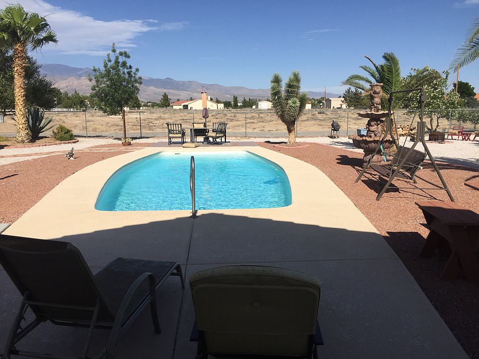 This beautiful home has it all! Don't miss your chance to own a home with a solar heated pool, spa, covered patio, solar power, grandfathered private well, extra 2.5 car garage/workshop and 1/2 bath, greenhouse, and 2 producing apricot trees. Inside you will find a kitchen with granite counter tops and stainless steel appliances, new carpet and tile, and a newly remodeled master bath.