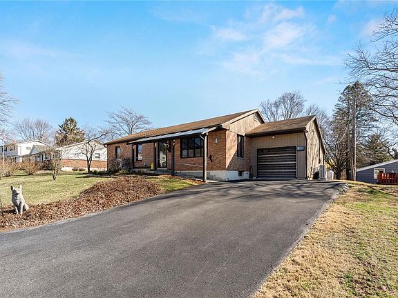 Ancient Oak Ranch with incredible two-story Cathedral family room complete with floor to ceiling gas fireplace, full, rustic wood ceilings and convenient access to enclosed screened patio with extra high ceilings. Ideal for relaxing in peace! Very functional galley kitchen with some nice upgrades including Viking gas stove and hood system, built-in hutch and more. Lots of potential to fully finish the basement, if desired. Currently there is a sound studio and workshop room. Very quiet, private back yard with mature trees and grounds including brick paver patio and large brick planter bed all on 1/3 of an acre. Yard is already fenced in. Includes propane home Generator for added peace of mind. Walk to park and trail. Great opportunity to own this East Penn Single!