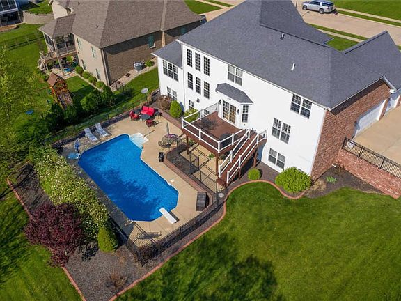 Executive 1.5 story Impeccably maintained home w/loads of amenities throughout. Exceptional curb appeal offered by beautiful brick exterior & extensive landscaping. 2 story foyer and Great room w/loads of windows & see thru gas fireplace to the hearth room. Impressive kitchen boasts granite counters, large center island, 42" cabinets w/crown molding & dining area w/walk out to the no maintenance deck overlooking the in ground pool. Large master suite w/walk in closet & onsuite w/ 2 pedestal vanities, corner tub & separate shower. Also on the main level find the formal dining room, oversized laundry room & 1/2 bath. Upstairs 3 generous sized bedrooms w/walk-in closets & 2 full bath(1 private /1 jack & jill). All bedroom closets & laundry room customized by St. Louis Closet Co! The walk out lower level offers a large family room w/wet bar another see-thru gas fireplace, game room, office area (media room) bath & exercise room (could be 5th bed). Electric pet fences in front & back yard!