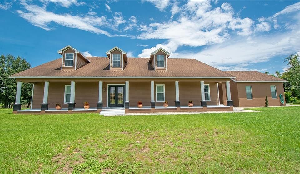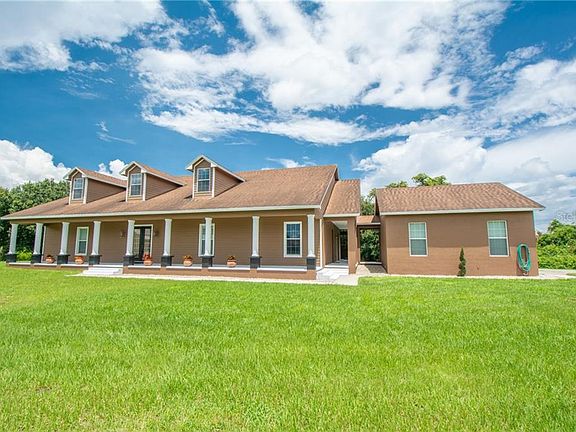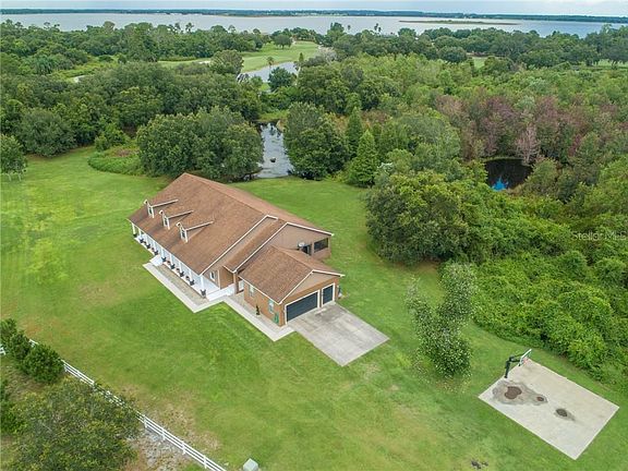 Stunning estate nestled on 6.6 acres set away from the road and bordering a lovely pond! Drive the elongated driveway past the basketball court to the freshly painted spacious 3 car garage tastefully landscaped with a spiral topiary and lovely white rock. Past the breezeway to the garage, step onto the elevated front porch adorned with terra cotta pots and colorful foliage. The French door entry opens to the open living room with a gorgeous gas fireplace, floor outlets and 2 sets of French doors with integrated blinds that lead to an expansive screened back porch that is fully equipped for your own custom outdoor kitchen. The master wing has sconce lighting, a set of French doors to the rear porch, and a magnificent master bath featuring a large open shower with 2 rain shower heads suspended from the ceiling, recessed lighting, a stand-alone jetted tub in the center and a long vanity on each side of the room. Just beyond is a fabulous walk-in closet complete with custom wall mounted rods and shelves, an island with drawers and shelving and a storage room. Through the living room a gourmet kitchen graces the home, with stainless steel appliances, a gas range, chef's fridge/freezer, slow close cabinets, an inset wine rack, adorned with stainless steel countertops and topped off by an enormous pantry with an automatic light. 2 guest bedrooms with walk-in closets, a guest bathroom with adult height countertops, a beautifully tiled shower and an extensive laundry room finish off this wing of the home.