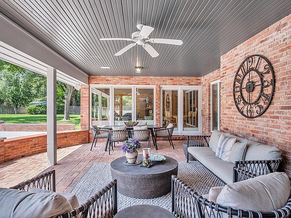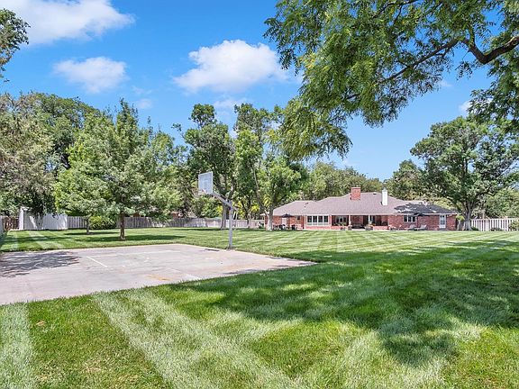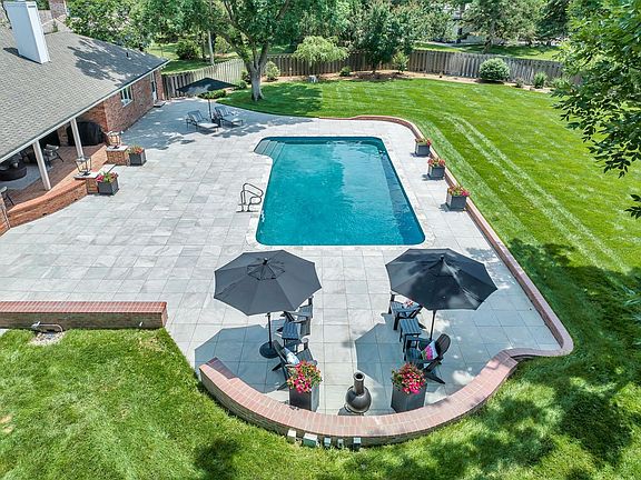 This stunning Country Acres property with impeccable attention to detail is a dream come true! Boasting a beautifully landscaped yard with mature trees and a sparkling heated swimming pool, this home offers the perfect blend of elegance and relaxation. The backyard oasis includes a covered patio with outdoor speakers, a sunroom with full bath, a sport court with basketball goal, concrete patios surrounding the pool, sprinkler system w/ drip irrigation, and exterior accent lighting, providing the best entertainment space! Beautiful curb appeal with circle drive. Oversized garage, newer IR Grand Sequoia Roof. The foyer entrance and high ceilings with crown molding throughout, create a sense of luxury and comfort from the moment you step inside. Formal living and dining room highlighted with space for a Grand Piano. Large floor-to-ceiling windows bring in lovely natural light. The main floor family room is open to the kitchen with a gas fireplace, built-in bar with accent lighting, and gorgeous hardwood floors. Adjacent is the sunroom, perfectly transitioning to the outdoor space. The gourmet kitchen is a chef's dream, featuring high-end stainless steel appliances, gas cooking, custom cabinetry, quartz countertops, and a large peninsula with breakfast bar. The kitchen also includes a work station for computer/ printer and a pantry wall! It's the perfect space for hosting and entertaining. The master suite is beautiful and includes a sitting area with gas fireplace, a gorgeous bath with soaker tub and oversized tile shower, heated floors, double sinks and private access to the swimming pool. Two more bedrooms, both with private baths, and a main floor laundry complete this floor. The basement is fully finished and provides the perfect space for movie watching and game playing fun! Pool table area, built in storage cabinets, a locked gun safe room, gas fireplace, 4th room with closet and private bath, work out room and office. There is wonderful storage with built in shelving and hobby space. This is a rare opportunity in this neighborhood!