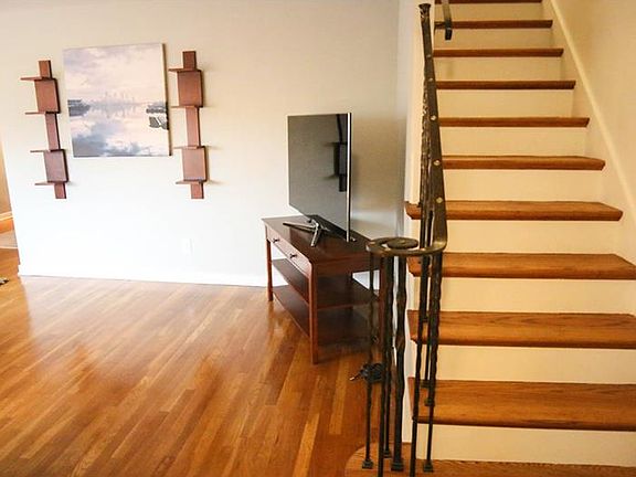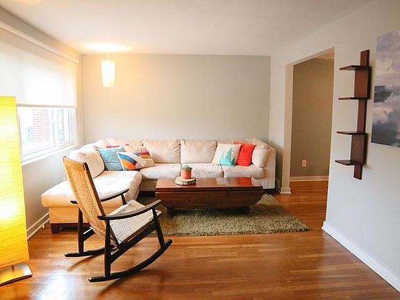 One of only a few Morningside homes with an integral garage. The first floor walks into a foyer with a coat closet and half bath. The large living room easily accommodates furniture and an entertainment center. On the first floor, both the living room and dining room have updated, large windows that provide ample natural light. Dining room looks out to rear patio and back yard. Large eat-in-kitchen allows access to rear patio. The kitchen is equipped with updated appliances juxtaposed by vintage Youngstown Kitchens porcelain sink and steel cabinets. The second floor has two spacious bedrooms, each with a large closet. Each bedroom has an updated, large window. The upstairs hallway has two linen closets. Ceramic tile and updated fixtures in upstairs bath. The home has a covered back patio and large, low maintenance yard. Huge windows, natural light, custom blinds, large yard, ingegral garage, 2 year old HVAC system, retro youngstown cabinets, large bedroom sizes,