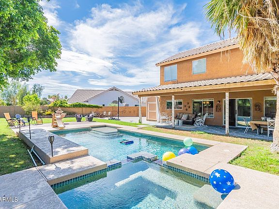 Charming 2-story home w/NO HOA located near downtown Chandler! This home offers a spacious & efficient floor plan. Main floor features a living room, family room w/fireplace, formal dining & chef's kitchen. Kitchen is equipped w/stainless appliances, custom cabinets w/ample storage & granite counters. Sliders from family room open to a large covered patio overlooking the sparkling pool, spa & expansive backyard. Oversized cul-de-sac lot offers the perfect space to enjoy the very best in al fresco living. Upstairs you will find a large primary suite w/flex space & en-suite bath & 3 other well-appointed bedrooms. Primary bath features a dual sink vanity, soaking tub & walk in shower. Just a short drive & you are at amazing restaurants, shopping & entertainment. Must see Chandler Gem!!!!