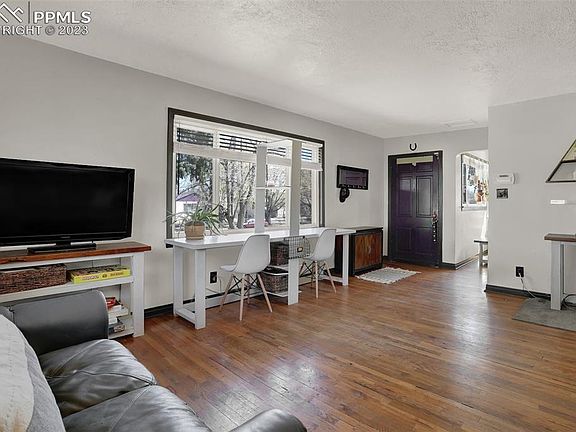 Welcome to this stunning home nestled in the heart of Colorado Springs, offering a perfect blend of charm and convenience. As you approach the property, you'll be greeted by a beautifully landscaped front yard, mature trees, and a cozy front porch. Stepping inside, you'll immediately notice the hardwood floors throughout the main level, creating an inviting atmosphere. The main level features two spacious bedrooms and a full bathroom. The dining room, located just off the family room, boasts large windows that allow natural light to flood in. The kitchen has been thoughtfully updated with new backsplash and chic exposed shelving. As you head to the basement, you'll find additional living space that is perfect for a nonconforming third bedroom, complete with a 3/4 bathroom. The oversized laundry room is also located in the basement, providing plenty of storage and additional functionality. The fenced-in backyard with a large stamped concrete patio offers a perfect outdoor space for entertaining guests or relaxing. Additionally, private parking is available behind the home, with a separate fenced-in area that can be utilized as a dog run. Plenty of space to build a garage! The location of this home couldn't be more perfect- just minutes from downtown and Memorial Park, with breathtaking views of Pikes Peak. This home is truly a gem, offering a perfect blend of style, updates, comfort, and convenience. Don't miss out on the opportunity to make it yours!