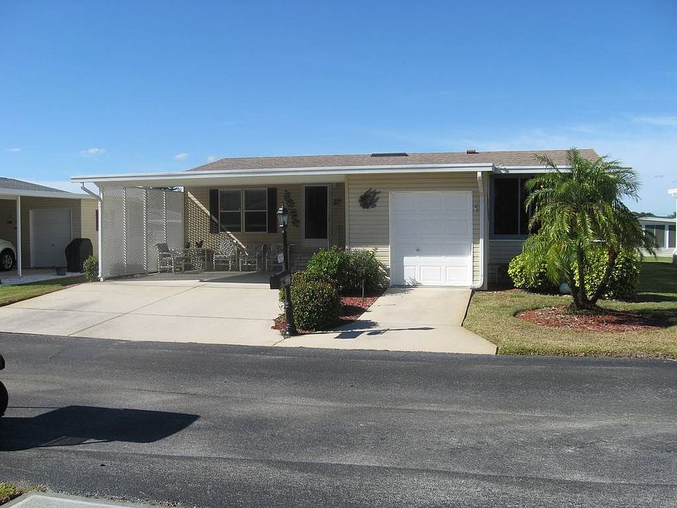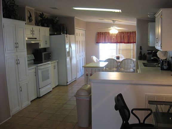 Beautiful Inside and Out....Easy Move-In since it's Turnkey!............ This lovely home is located in beautiful Four Lakes, a 55 plus gated community with homes on lot leased land. Here you own the home, but not the land. Paying the monthly lot rent also gives you and your guest access to the amenities of the community............. This great home features an open floor plan, two bedrooms, two baths, eat-in kitchen, and it comes fully furnished...including dishes, pots and pans etc............. The tastefully decorated living room is open to the large eat-in kitchen which has plenty of cabinets and counter space, side by side refrigerator with water and ice dock, smooth top stove, microwave and a brand new dishwasher............. The large master bedroom has a walk-in closet and French doors lead to the spacious master bath with his and her sinks, walk-in shower and a linen closet............. Sliding glass doors lead to a 10' X 12' front Florida room with carpet and glass sliding windows. It's a perfect place to relax with your favorite beverage!............ You will love the extra wide drive and side driveway that leads to the 10' X 11' golf cart shed and yes, a golf cart is included! This home has great curb appeal and it is turnkey!