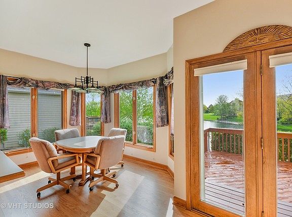 Welcome to this Gorgeous Harris Farm Subdivision home situated on the beautiful pond with nature galore! Enjoy sitting on the brick paver patio or the huge freshly stained deck looking at the water view. The oversized kitchen has a huge island, breakfast bar, and the breakfast room that also has the view of the pond. The two story family room has a wall of windows and a fireplace! There is a first floor master suite that also has the water view, roomy bath with separate shower and a huge walk-in closet! The living room has beautiful french doors and could be a first floor office. Just off the spacious foyer is the large dining room. Go up the dramatic 2 story stairway to the spacious loft that has a large walk in closet. The upstair bedrooms are spacious and have large closets. The Family room has built-in surround sound. The English basement is airy and bright with above ground windows. Award winning Naperville schools! So close to shopping, dine.