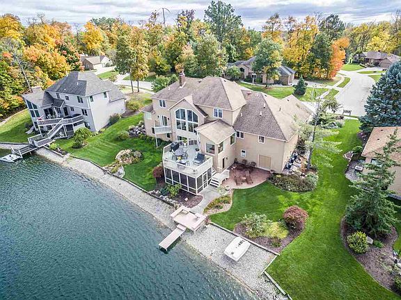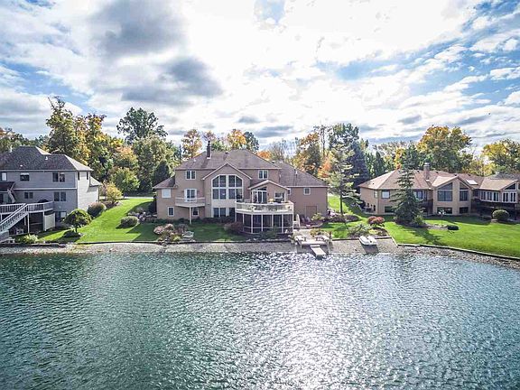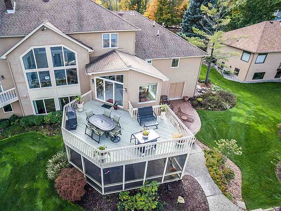 MILLION DOLLAR VIEW in Woodland Lake. Custom-built by Buescher with stunning lake views from nearly every room. Over 5700 SF of finished living space on 3 levels. Beautiful finishes throughout. Chef's kitchen offers quartz counters, tile backsplash, center island, wine fridge, and convection stovetop & double ovens. Main level master suite with private deck, spa-like bath and huge 20 ft closet. 4-season sunroom with deck access also overlooks the view. Upstairs find 3 bedrooms, one with a private full bath, and the other two with a jack-and-jill bath. The walk-out lower level features a family room, den/office, full kitchen/bar, craft room/closet, half bath, enclosed hot tub room, plus screened porch. Recent updates include 3 furnaces & C/A units (3 yrs. old), new poured driveway & stamped concrete sidewalk & patio. This gorgeous home is move-in ready and offers everything you could want.