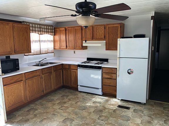 THIS IS A 1974 MOBILE HOME LOCATED ON A LEASED LOT--[LEASE IS $130 PER MONTH]--INCLUDED IS A SMALL OUTBUILDING, PORTABLE ONE CAR GARAGE AND A LARGE 12 X 60 FOOT OVERLOOKING A LAKE.-- ALSO INCLUDED INSIDE ARE GAS RANGE, REFRIGERATOR, WASHER AND DRYER--TOTAL BATH REMODEL IN MAY, 2019 WHICH INCLUDED FLOOR, SHOWER, TOILET, SINK, AND VANITY.---ELECTRICWATER HEATER NEW IN 2019.--NEW BLOWER MOTOR AND GAS VALVE ON FURNACE ALSO IN 2019. SINCE THIS IS A LEASED LOT, BUYER IS REQUIRED TO FILL OUT A RENTAL APPLICATION OF MOBILE HOME PARK AND BE APPROVED BY THE OWNERS OF THE PARK IN ORDER TO LEAVE IT WHERE IT IS.
