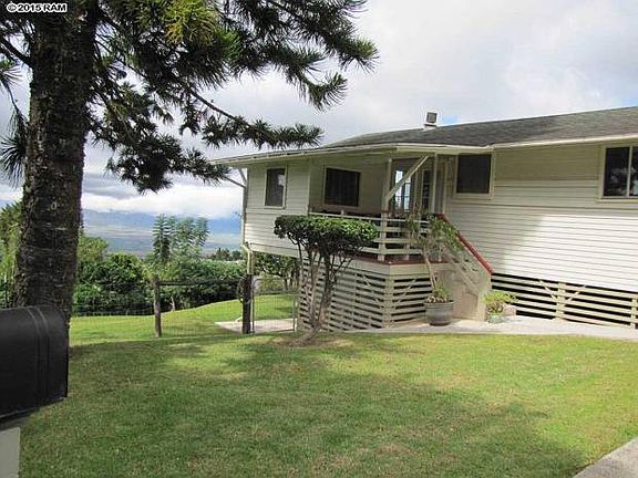 Once you step onto the covered porch, you will appreciate the old Plantation Charm of this Kula Classic. Wood floors, canec ceilings, big picture windows and a simple but charming kitchen add to the charm. 2 bedrooms and 2 baths are upstairs while the 3rd bedroom/3rdbath is the finished basement. As a bonus, there is a storage room downstairs that is perfect as a project space, office or whatever. The detached garage with a handy workshop is perfect for the handy person. The large 14,235 sf lot is completed fence on the lower 40 and perfect for you animal lovers. The downcountry and West Maui views are great and certainly would be enhanced with the addition of a deck. Conflicting public records on age and sq footage of structure. Buyer to perform own due diligence!