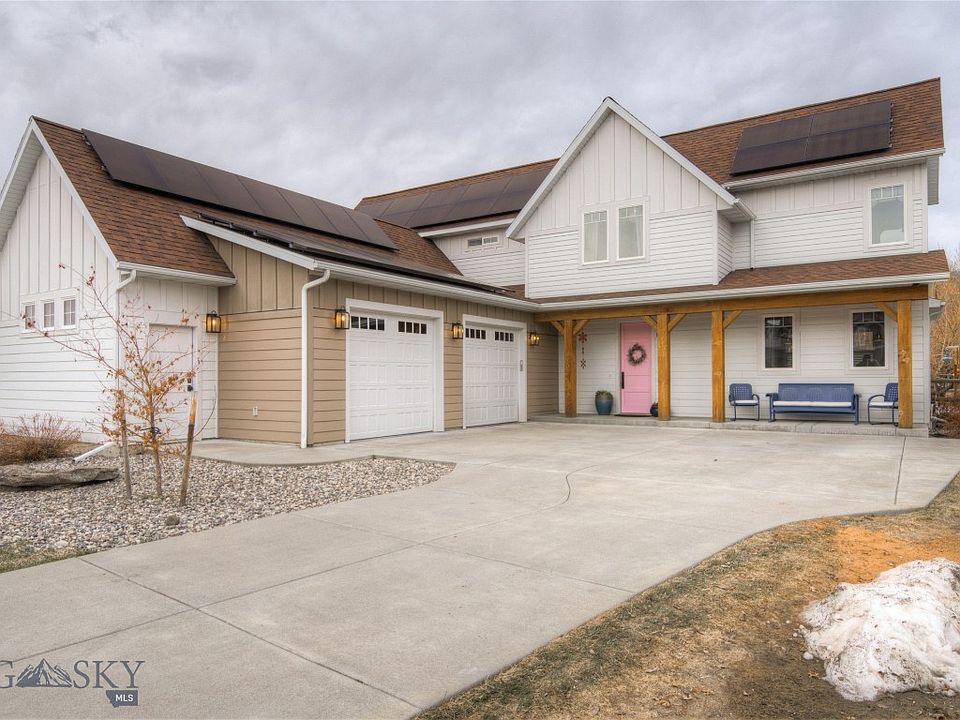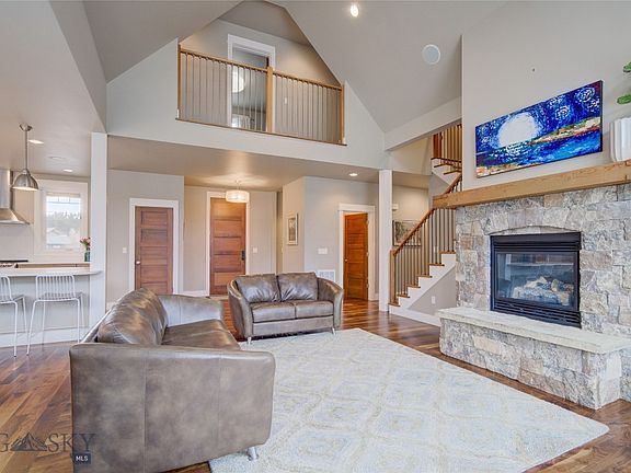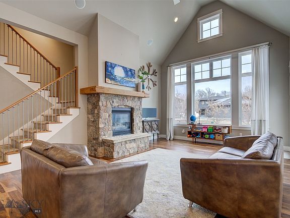 This custom home in the highly regarded Legends subdivision, offers clean lines, efficiency, a functional floor-plan & great light. Open concept living on the main level w/ gas fireplace, vaulted ceilings & mountain views. Spacious kitchen w/ quartz counters, generous storage & high end appliances. Recently refinished wood floors throughout. Roomy primary suite on main level w/ ensuite bath - twin vanities, tile shower, private lavatory & walk-in closet. Upstairs 3 beds & large full-bath w/ twin vanities. PV Solar & Central A/C. Mud room & laundry w/ built-ins – Washer/Dryer convey. Oversized 2-car attached garage w/ dog wash & additional storage room. Low maintenance landscaping w/ irrigation, fenced backyard & raised beds. Neighborhood trails connect to Bridger Mtns, downtown Bozeman, Story Mill park, East Gallatin Rec Center/MAP, Bridger Creek golf course. Approx 20 mins to Bridger Bowl, 1 hr to BigSky, 30 mins to Yellowstone & Madison Rivers, 5 mins to dining, shopping & amenities.