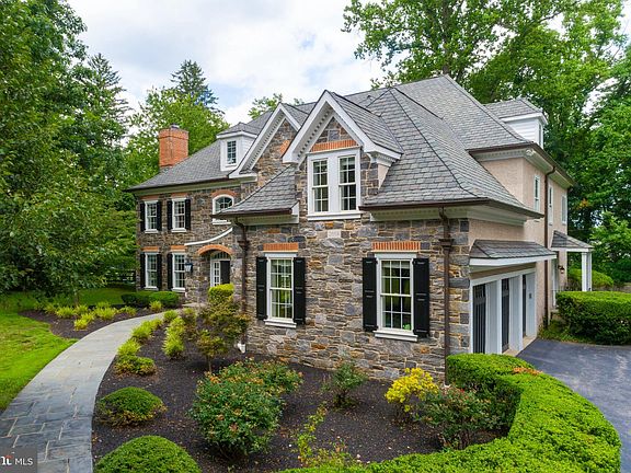 This gorgeous, 5 bedroom, 5.2 bathroom, stone colonial is situated on nearly an acre of beautifully landscaped grounds and offers optimal privacy and serenity. Enter through a secure, gated entry and follow the private driveway shared with just one other grand home. This exquisite home is set far back from the road and is surrounded by lush greenery and fully fenced in grounds. A beautiful flagstone walkway will lead you to the inviting main entrance which opens up into an impressive 2-story foyer featuring a sweeping Juliette staircase, stunning architectural details, beautiful moldings, and rich hardwood flooring. This home's desirable open floor plan offers large rooms, high ceilings and ample natural light. The first floor houses a formal living room, formal dining room, family room, library, kitchen with breakfast room, two powder rooms and a mudroom, all which flow nicely into the entryway of the home. The large dining room with convenient access to a butler pantry features elegant chair rail detail and a beautifully designed triple window providing gorgeous views of the lush grounds. The spacious formal living room with gas fireplace leads to a formal powder room and elegant library with expansive built-in bookshelves and cabinetry. Adjacent is a large family room with vaulted ceilings, skylights, gas operated fireplace, custom built-ins, and french doors which provide access to a spacious deck and large, flat backyard. Off of the family room is an open-concept kitchen and breakfast room which offers both beauty and functionality. The gourmet chef's kitchen features granite countertops, tumbled stone backsplash, a large center island, 42 high cabinets, gorgeous custom-built armoires with Mackenzie Childs hardware, Miele coffee bar, Bosch Dishwasher, Viking oven and 6 burner gas range with grill and griddle, Viking hood and Viking refrigerator and GE microwave. The kitchen opens up to the butlers pantry and dining room making the first floor ideal for entertaining. The breakfast room houses a gorgeous custom-built kitchen table and provides access to the rear deck with awning through beautiful French doors. To complete the main level you will find a mudroom which features matching custom-built pantry cabinets, a second powder room, large walk-in closet and direct access to the three car garage. The home is fit out with a central vac system and the HVAC systems were recently updated. The second floor offers 5 bedrooms, 4 full bathrooms, and a conveniently placed laundry room. Double doors open to the large master suite with a sitting room featuring his and hers walk-in closets and en-suite bathroom equipped with a Whirlpool tub, floor to ceiling glass shower and double sink vanity. Each additional bedroom offers generous closet space and tall windows. From the hallway, follow the stairs to the finished third level offering a large bonus space with ample storage and a full bathroom. The partly-finished basement spans the entire footprint of the home and offers high ceilings making this the ideal space for a home gym, game room, and/or playroom - the options are endless! Perfectly located with easy access to the Villanova train station and major highways, in a top school district, and close to many shops and restaurants. There is so much more to see and feel in this beautiful Main Line estate. Schedule your tour today and prepare to fall in love! Check out the 3D Matterport Tour - https://my.matterport.com/show/?m=KD8zQyJb5rr&mls=1 2020-09-02
