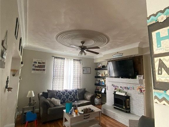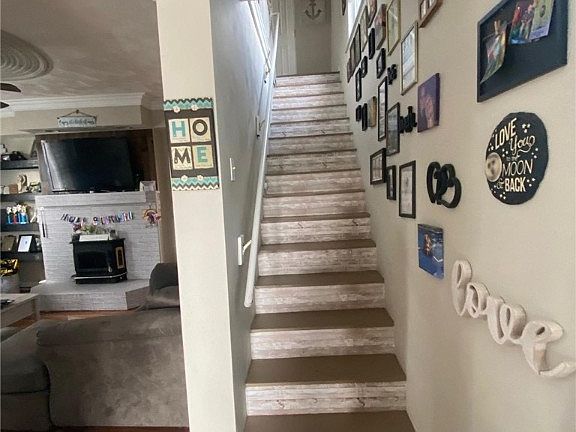 Fire place is insert. Level fenced in yard with pool and a pond with a deck for entertaining room to make off street parking